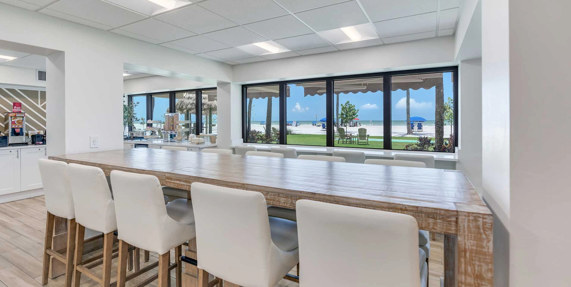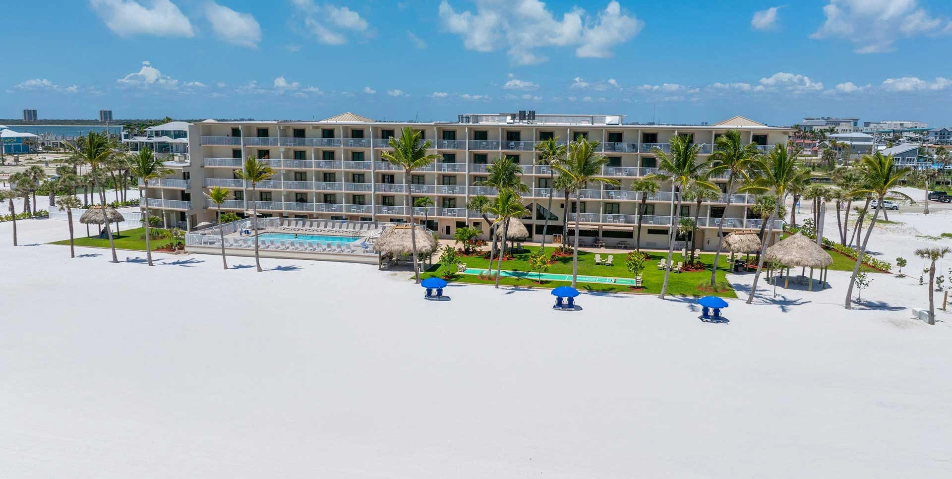 Start each day with our delicious complimentary breakfast before stepping out onto the pristine white sand beach, where true relaxation and endless fun await. If you’d rather skip the sand for a while, take a refreshing swim in our outdoor heated pool and unwind in comfort poolside. For the ultimate beach day, rent beach chairs and oversized sun umbrellas right here on-site, ensuring your perfect spot by the shore.